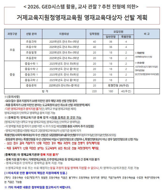 2026학년도 거제영재교육원 영재교육대상자 선발 계획 안내