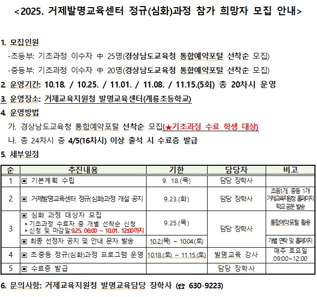 2025. 거제발명교육센터 정규(심화)과정 참가 희망자 모집 안내